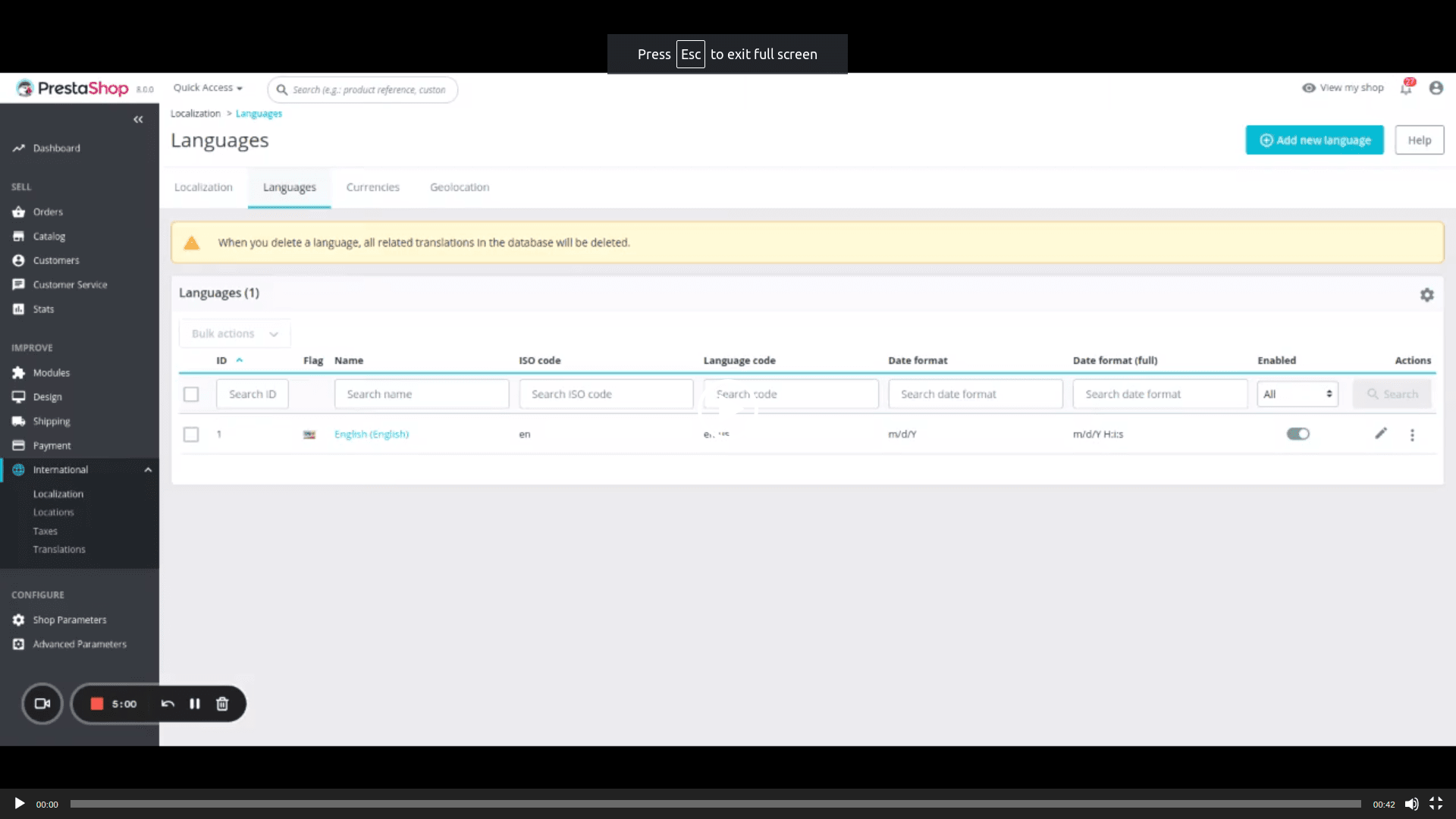 Language pack installation- Go to the left menu after installing PrestaShop in the language you understand. You will see the admin panel called “improve,” click on it, and then click on “international,” which will navigate you to “localization .”Now click on the languages to check all that is added to the store. Now navigate to Improve/International /Translation. Here at translation, click on the add and update language block. Add your desired language, and a new language will be added to your PrestaShop store.