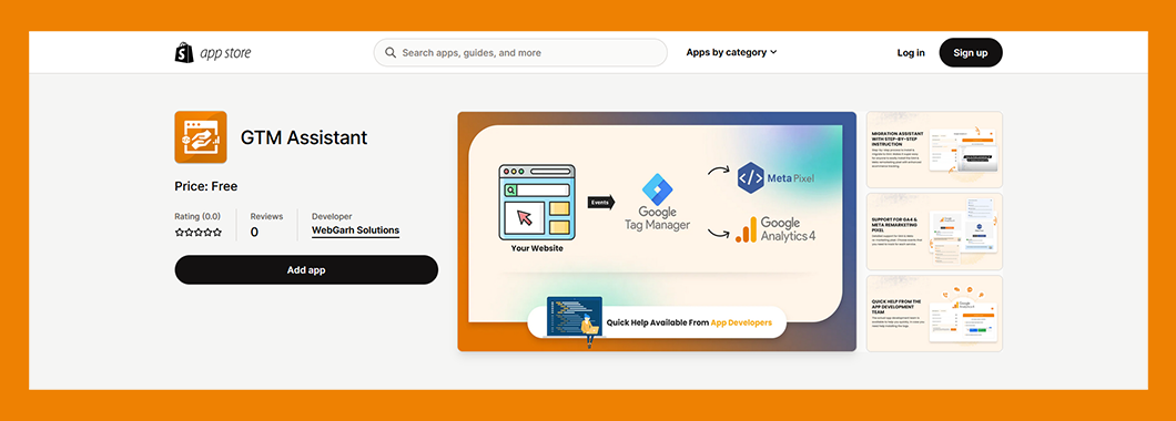 “GTM Assistant” app is good if you are using Google Tag Manager. This app provides an easy-to-use interface that allows you to track website events, manage tags along with enhanced ecommerce tracking. With GTM Assistant, you can streamline your tag management process and get more out of your Google Analytics 4.
